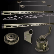 - Bộ buli: Bao gồm 2 buli đơn và 2 buli đôi, giúp hỗ trợ việc nâng hoặc hạ thanh phơi. (Xem hình 1, bên trái là buli đôi, bên phải là buli đơn )
